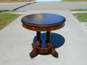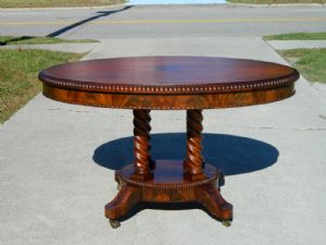 Mahogany Rope Turned Center TableFantastic rope turned center, solid and ready to take its place in any home. 28 1/2 inches high, 50 inches wide, 34 inches deep. Check out our eBay Store for more details or Call Janine at 252-238-2146 $995.00