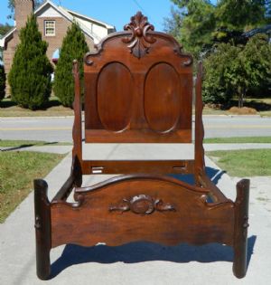 Walnut Victorian High Back BedFor sale is a walnut Victorian bed. 87 1/2 inches high, 78 total length, 62 total width. Mattress area 58 wide and 74 1/2 inches long. For more details check out our eBay store or call Janine at 252-238-2146 $1,200.00